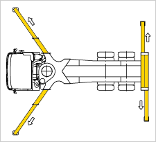 In the rear with slung outriggers